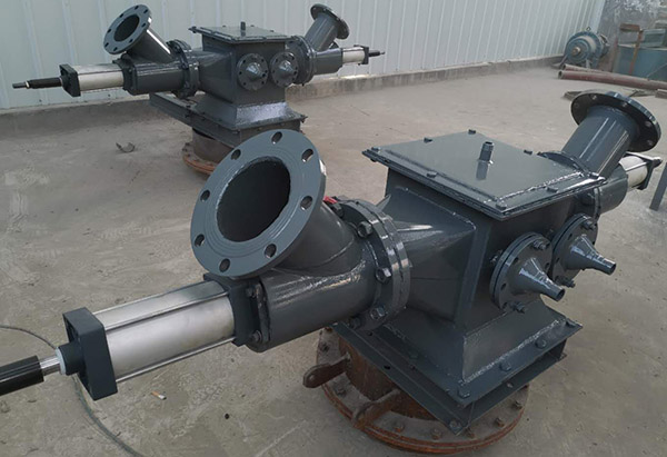 双侧库底卸料器专用于灰库底部卸料,设备带有自动流化装置卸料时能使物料流态化排出,通过输送管道或斜槽,配合散装机直接装料,该系列有气动和手动两种控制方式,气动用电磁控制气缸伸缩运动,实现卸阀门的启闭;手动为转动手轮启闭阀门。两侧可单独运行,也可同时运行。
